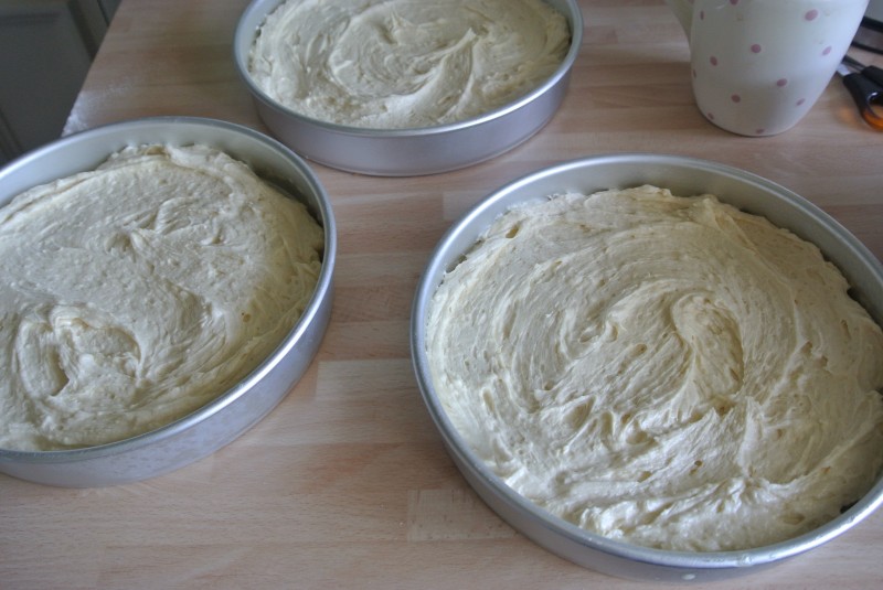 Grease and line the bases of 3 x 8” sandwich tins. Don’t worry if you only have two, the mixture will be happy to wait in the bowl until the first ones have baked.